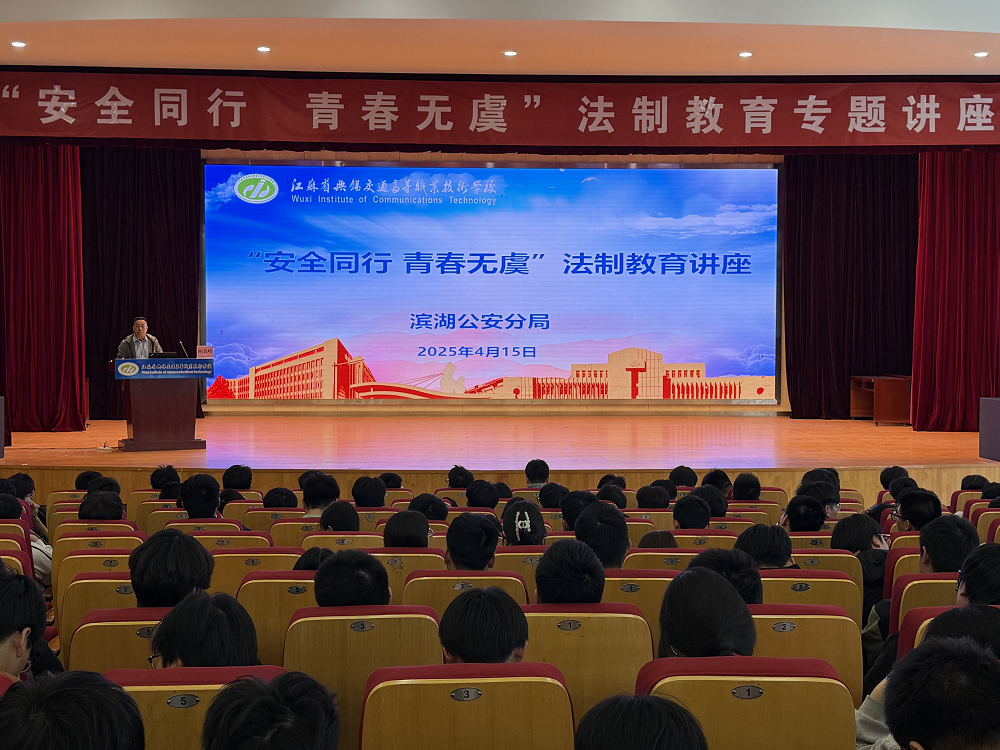 2025年4月15日,是第10个全民国家安全教育日,为增强师生的安全意识和法治观念,提高师生自我保护能力,学校邀请无锡市公安局滨湖分局内保大队鲍其峰大队长,来校为师生开展以“安全同行 青春无虞”为主题的安全教育讲座。各学院师生代表共650人参加了本次教育。讲座由保卫处处长杨俊主持。