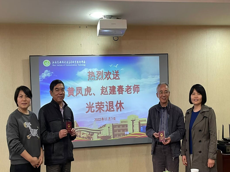 11月3日下午,船舶工程学院为赵建春、黄凤虎两位老师举行退休欢送会,船舶工程学院全体教师和校工会蒋治国老师参加了本次欢送会。