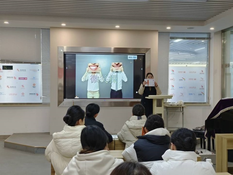 2024年1月10日,船舶工程学院开展校级公开课评议活动,吴依霖老师在励志楼二楼航空服务实训基地化妆室教室为211151班的同学们开展了民航服务礼仪课程中的《微笑》的公开课,学院部分教师、其它兄弟学院部分教师前来观摩评议。