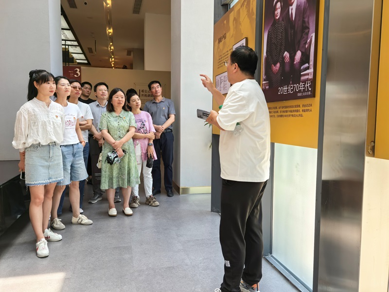 荣毅仁纪念馆坐落于无锡市滨湖区荣巷西浜头,占地面积11195平方米,由荣氏旧居、生平事迹陈列馆和荣德生先生纪念堂三大展区构成。展馆创新运用全息投影、数字沙盘、场景复原等现代展陈技术,生动再现了荣毅仁先生实业报国的光辉历程和清正廉洁的高尚品格。在“实业兴邦”展区,党员们通过珍贵的历史影像和实物资料,深刻感悟荣氏家族“实业救国”的爱国情怀;在“清风廉韵”专题展区,大家驻足聆听讲解,从荣毅仁先生担任国家领导人期间严于律己、克己奉公的感人事迹中汲取精神力量,同时结合中央八项规定精神中 “厉行勤俭节约、反对铺张浪费” 的要求,对照感悟老一辈革命家在廉洁自律、作风建设上的标杆作用。