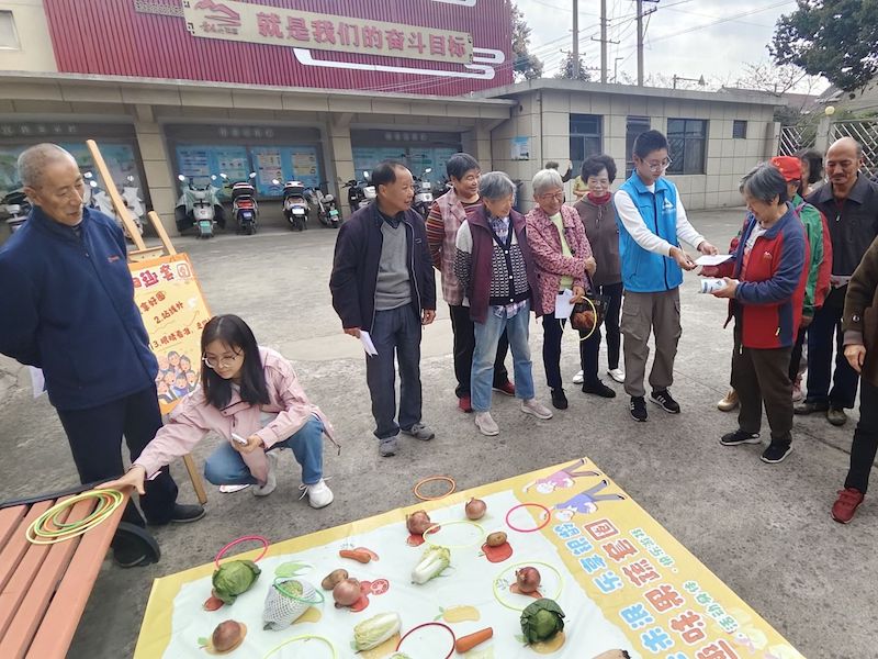 本次活动分为“欢乐银龄”与“重阳雅韵”两个阶段。在“欢乐银龄”环节,志愿者们协助开展了“果蔬圈趣”“健康驿站”“法润夕阳”及“时光记‘逸’”等多项互动活动。同学们耐心维护现场秩序,协助老人参与游戏,陪伴他们测量血压、血糖,聆听健康知识讲解,并在打卡墙前帮助老人留下温馨合影,记录美好瞬间。