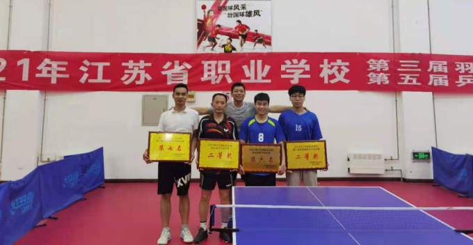 2021年5月8-11日,2021年江苏省职业学校第八届体育教师乒乓球比赛、第五届学生乒乓球比赛在徐州市举行,此次赛事由江苏省学生体育协会主办,江苏省学生体育协会职业学校工作委员会、江苏省学生体育协会工作委员会乒羽分会、江苏省徐州市医药高等职业学校承办。本次大赛吸引来自南京市、无锡市14支队伍参加比赛。经过裁判公平公正的裁决,我校乒乓球学生代表队以扎实的基本功、出色技战术,在团体第一阶段中脱颖而出,最终在团体第二阶段中获得团体赛二等奖;教师代表队最终力克东道主徐州医药高职教师代表队获得团体赛二等奖!