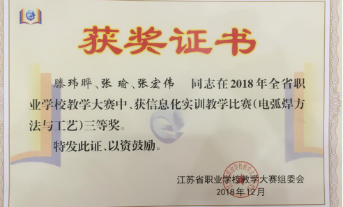 江苏省职业学校教学大赛信息化实训教学比赛三等奖