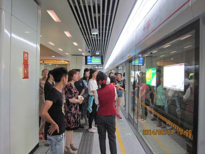 2014年6月14日早上9:30,交通工程系32名暑期地铁志愿者在系部毛兰霞书记和朱珂玮老师带领下,前往无锡地铁一号线太湖广场站进行岗前培训。地铁工作人员带领学生参观车站的站厅和站台,对同学们详细说明志愿者的工作内容和注意事项,同学们认真听讲并做了笔记。在地铁工作人员的详细讲解下,32名同学逐一认识了各种轨道设备,并了解了如何去使用它们。