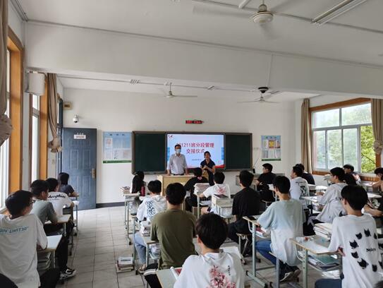 为更好地做好高职四、五年级分阶段管理工作,2023年6月7日下午,机械工程学院在育德楼303教室举行了201211班分段管理交接仪式。201211班原兼职辅导员翁松露老师给同学们详细介绍了后面接手辅导员陈昌兵老师的具体情况,同学们以热烈的掌声欢迎陈老师进入班级。
