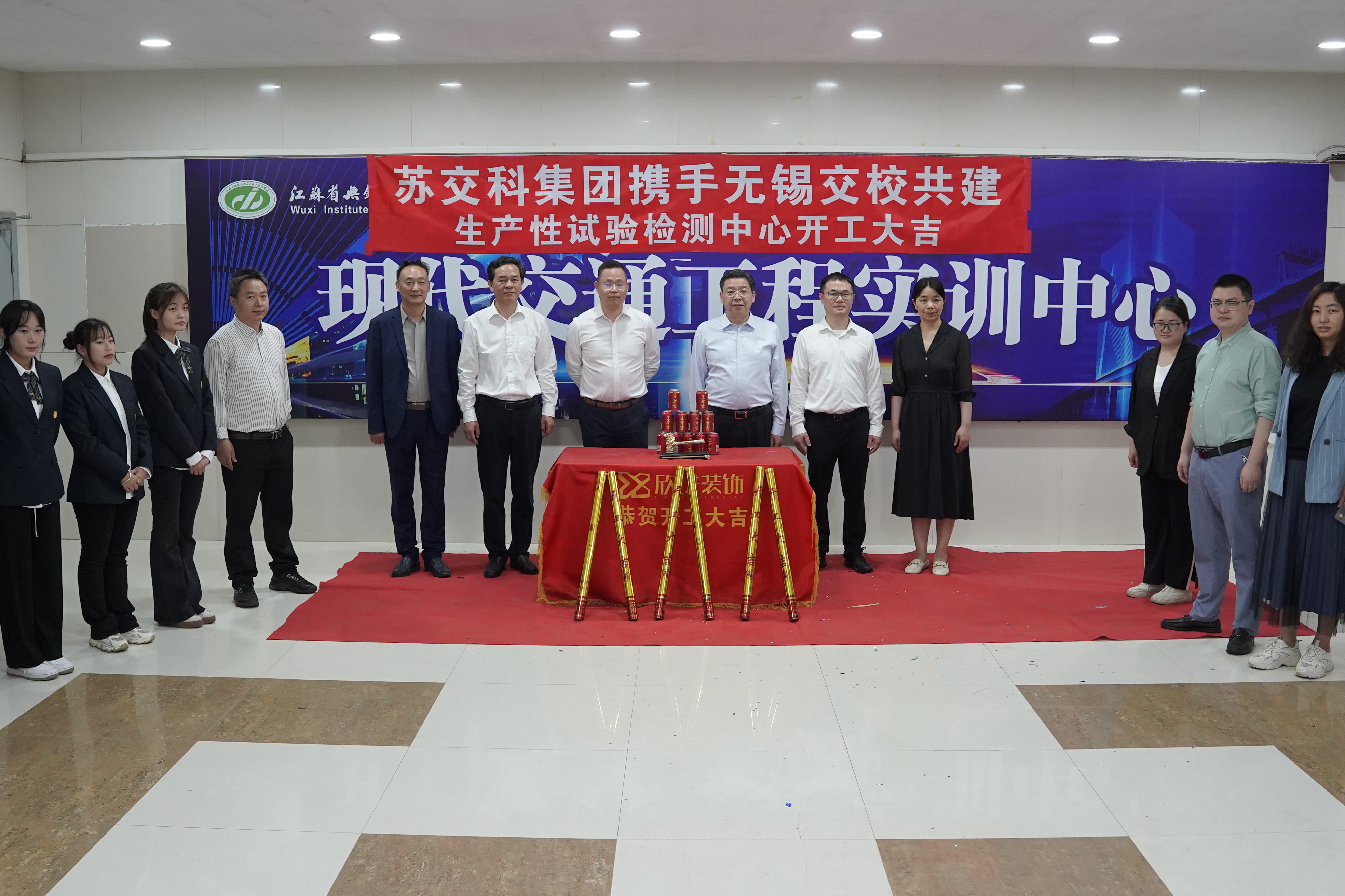 学校党委书记、校长李虎,学校党委委员、副校长耿兴华、苏交科集团检测认证有限公司锡通分院院长施栋豪、苏交科集团检测认证有限公司锡通分院项目经理姚建华出席开工仪式。