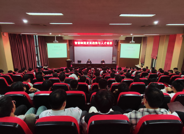 师生们仔细聆听夏教授的讲座,整场讲座夏教授准备十分充分,通过多媒体视频、图文并茂等,深入浅出的讲解,让同学们明白智能制造是一种先进的生产趋势,它能够促进生产方式的升级,提高生产效率,减少劳动力成本,缓解人力资源压力。同时,还能够促进工业生态环境的改善,推动生态可持续发展。