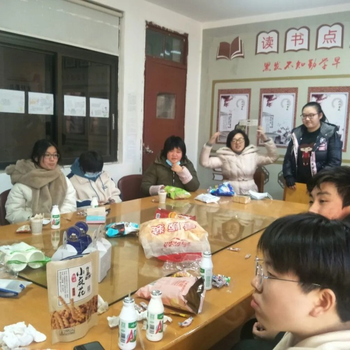 午会在生动有趣的“成语接龙、谁是卧底、数字炸弹、你来比划我来猜”等游戏中开始,同学们积极参与,欢声笑语充满整个活动室。社长还精心为大家准备了许多可口的美食,与同学们共同回忆2020 年社团开展的读书沙龙、阅读书籍目录、助残“童在蓝天下”等活动,笑容洋溢在每个人人的脸上。