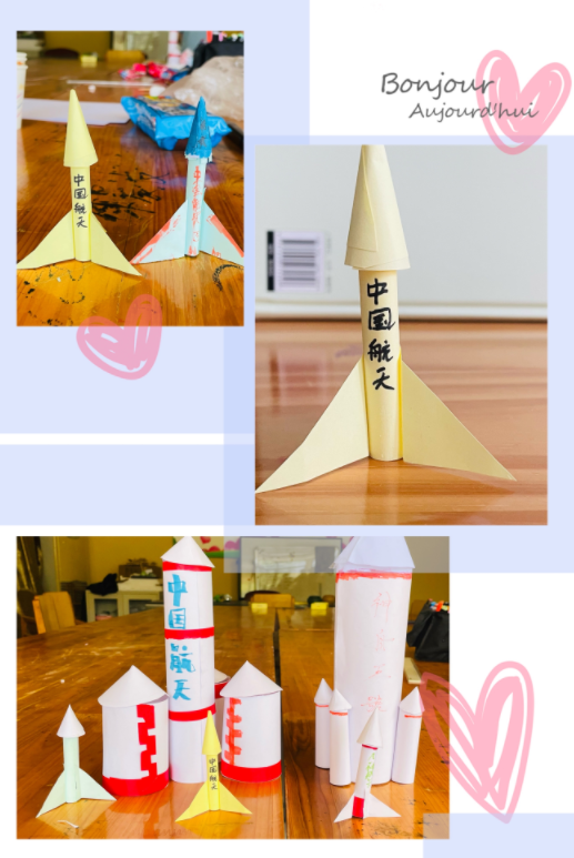 活动中,袁雪平老师首先带领大家学习运载火箭的诸多原理,比如火箭的构造、火箭起飞的动力、卫星如何与火箭分离等。随后,同学们根据提供的A4纸、胶带等素材,通过裁、剪、粘、撕、贴等一系列活动,逐步完成箭身、助推器等部位的制作的拼装,同时还给火箭进行了装饰。最后,在袁老师的带领下,同学们利用制作的小火箭模拟“发射”,让小火箭“飞”起来,活动现场气氛活跃。