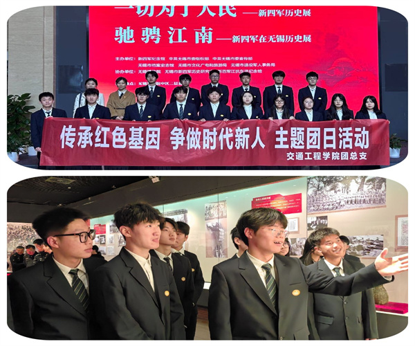 交通工程学院团总支组织学生赴无锡博物馆参观“一切为了人民一一新四军历史展”“驰骋江南一一新四军在无锡历史展”专题展览,接受革命精神洗礼,激励青年学生继承优良传统,传承革命精神,争做时代新人。