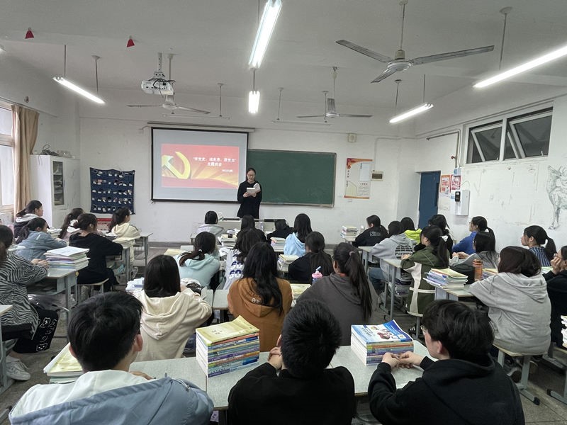 428日,192151班班主任、驻班党员万玉华老师在班级组织学生开展了学党史、颂党恩、跟党走主题班会,班会课上通过视频、图片及学习《中国共产党简史》让同学们了解中国共产党艰苦卓绝的奋斗历程,号召同学们树立远大志向,热爱伟大祖国。同学们交流讨论,分享收获,表达了对党的感恩之情,坚定了听党话,跟党走的信念。