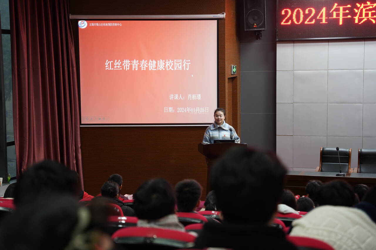 为了进一步提高我校学生对艾滋病、毒品的防治意识,向广大师生传授艾滋病、毒品防治知识,维护学生的生命健康,推动学校防治艾滋病、防毒品工作深入开展。学校于2024年11月25日下午邀请无锡市滨湖区疾控中心周俊燕主任、肖枥璠医生在学术报告厅进行滨湖区青春健康进校园《艾滋病与毒品防治知识》宣传讲座。150余名学生参加了本次宣讲活动。