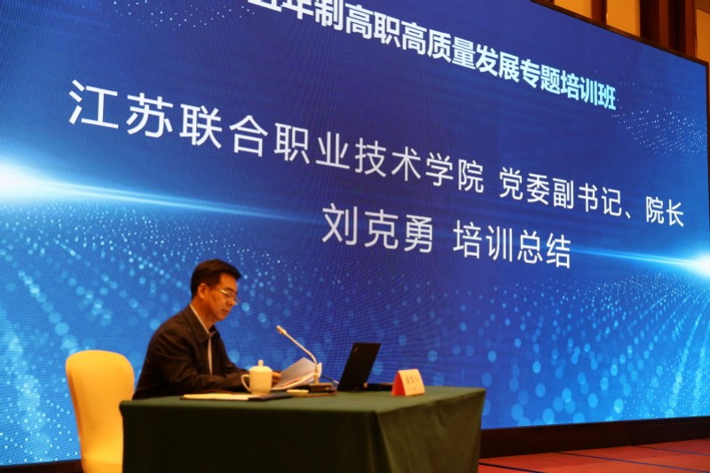 12月19-21日,江苏联合职业技术学院五年制高职高质量发展专题培训班在常州举办。省教育厅二级巡视员、发展规划处处长冯大生,学院党委书记夏成满、院长刘克勇,省教育厅职业教育处副处长徐庆出席会议并讲话。学校党委书记、校长李虎一行参加了本次培训交流活动。