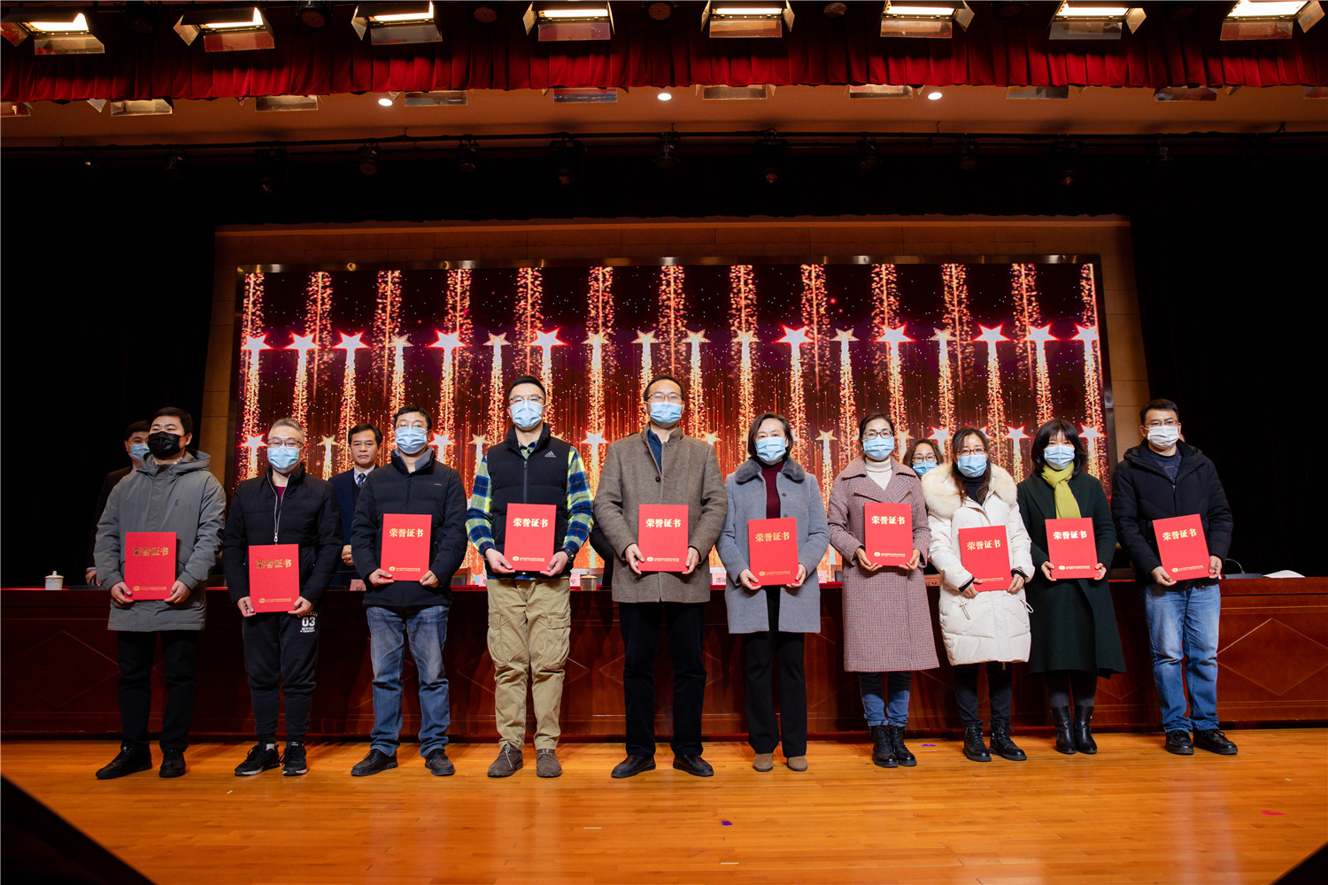 学校党委副书记、纪委书记朱雨兰宣读了学校“2020年十件大事”。学校副校长邢勇宣读《关于表彰学校2020年师德师风先进集体、师德师风先进个人的决定》,副校长倪依纯宣读2020年教职工获奖情况通报。会上,校领导为获奖集体和个人颁发荣誉证书。