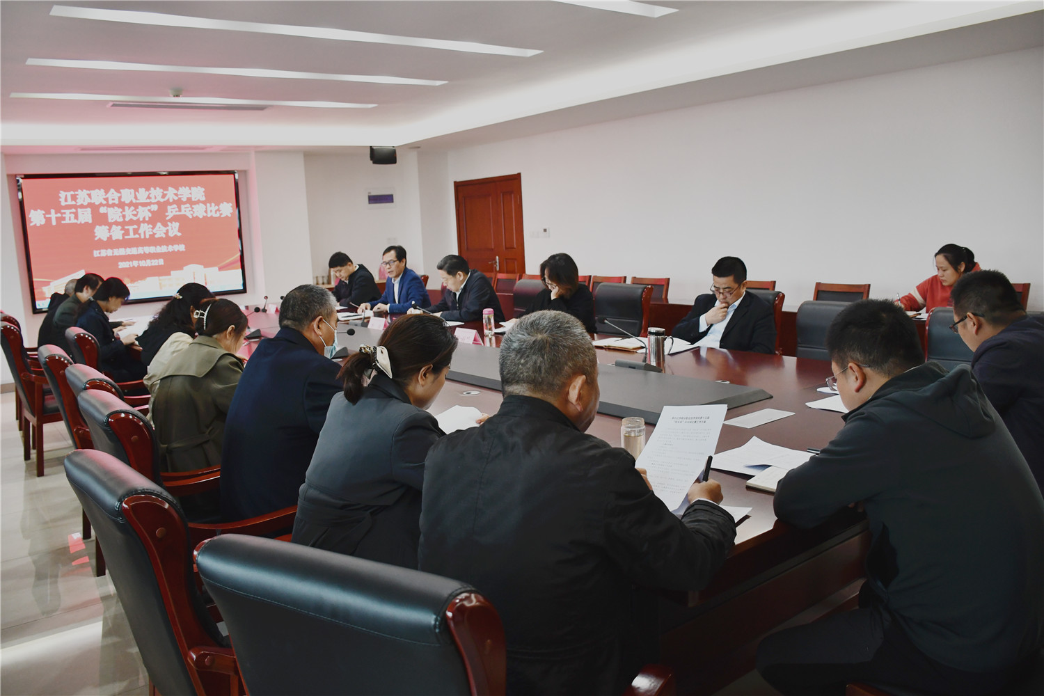 10月22日,学校召开江苏联合职业技术学院第十五届“院长杯”乒乓球比赛承办工作筹备会。全体校领导参加了会议。会议由校党委委员、副校长耿兴华主持。