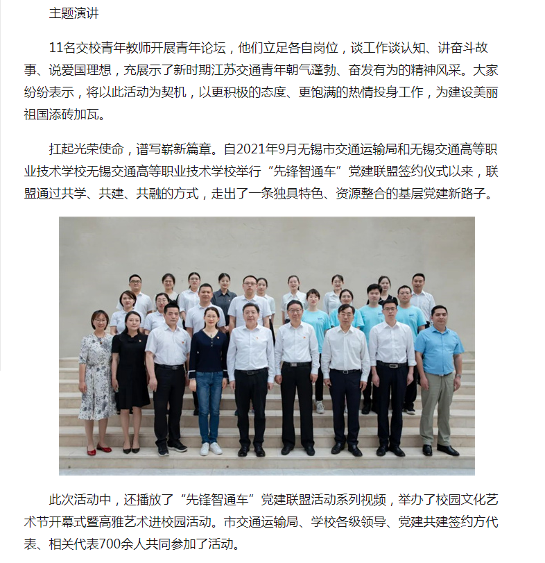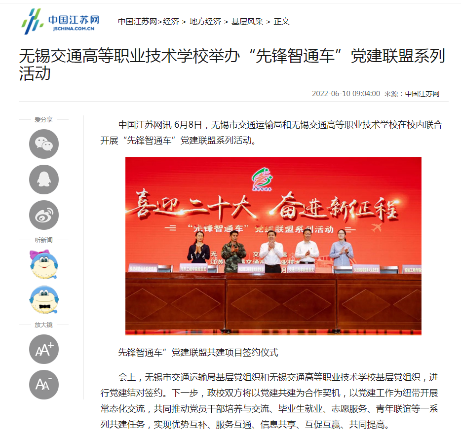 中国江苏网:无锡交通高等职业技术学校举办“先锋智通车”党建联盟系列活动