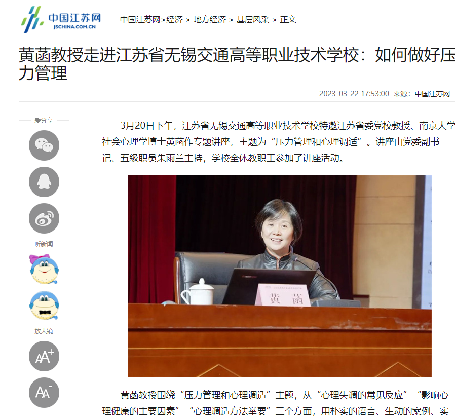 黄菡教授走进开云手机客户端:如何做好压力管理_中国江苏网 (jschina.com.cn)