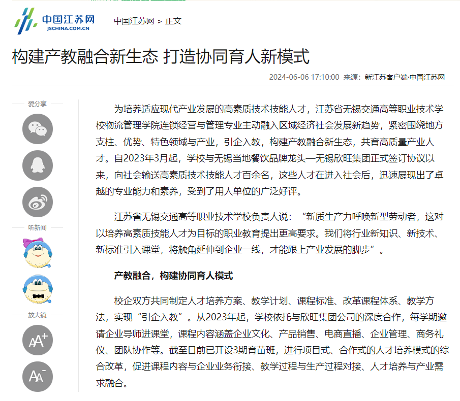 学习强国:江苏无锡:构建产教融合新生态 打造协同育人新模式