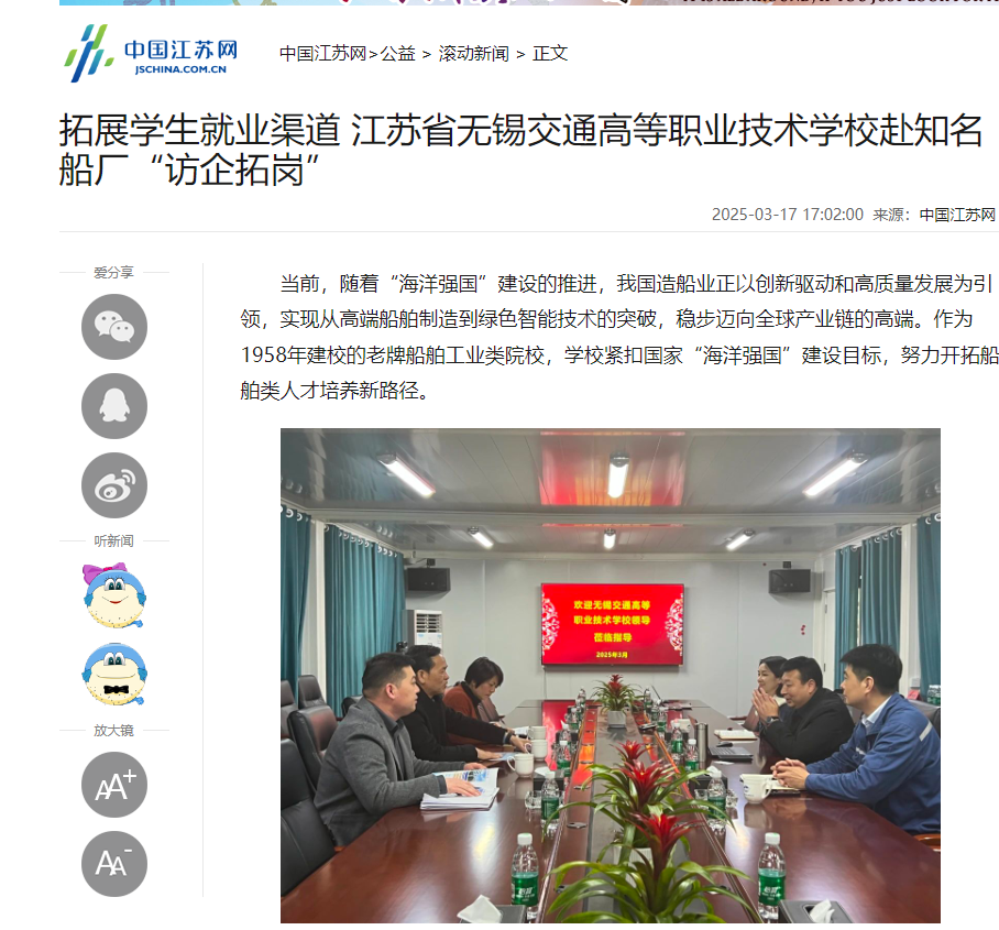 中江网:拓展学生就业渠道 开云手机客户端赴知名船厂“访企拓岗”