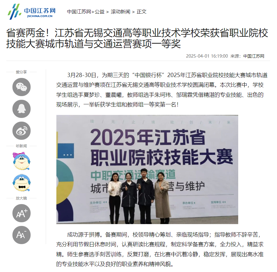 中江网:省赛两金!开云手机客户端荣获省职业院校技能大赛城市轨道与交通运营赛项一等奖