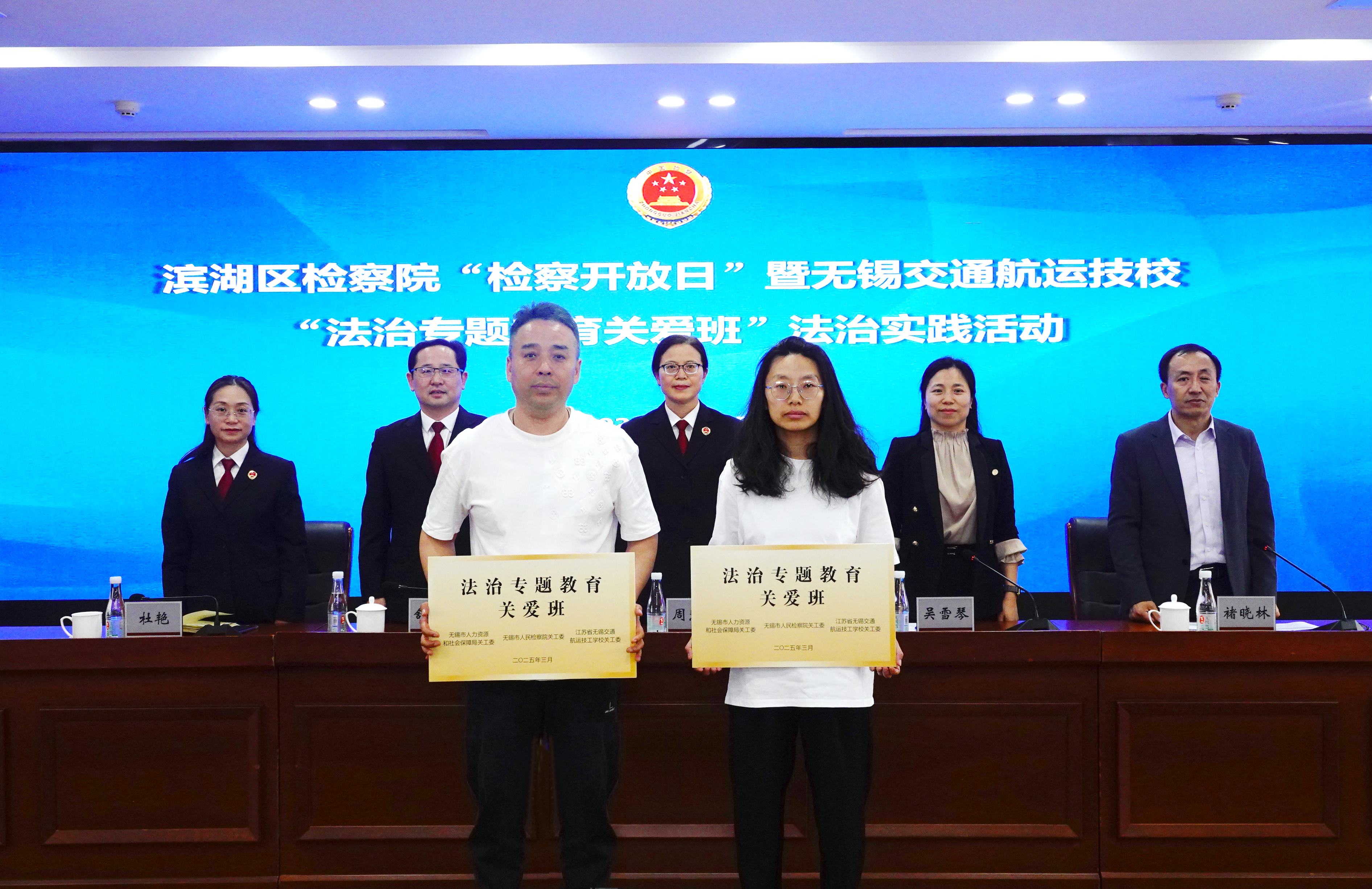 为强化青年学生法治教育,助力青少年健康成长。4月9日下午,“法润心田,护航青春”滨湖区检察院“检察开放日”暨学校“法治专题教育关爱班”法治实践活动,在无锡市滨湖区人民检察院顺利开展。此次活动由学校关工委、无锡市人民检察院关工委、无锡市滨湖区人民检察院关工委联合举办。无锡市人民检察院、三级高级检察官周慧娟,学校党委委员、副校长吴雪琴,无锡市滨湖区人民检察院党组书记、检察长舒广权,无锡市滨湖区人民检察院党组成员、政治部主任杜艳等领导出席活动。