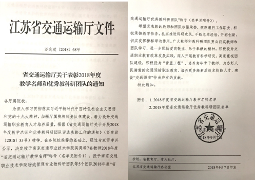 江苏省交通运输工程高(中)级专业技术资格评审委员会委员;