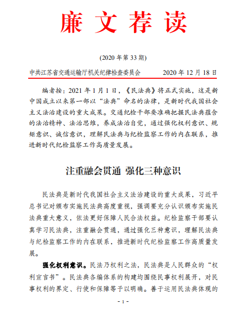 廉文荐读第33期——注重融会贯通 强化三种意识
