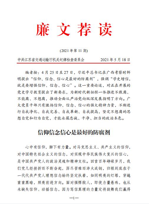廉文荐读2021年第11期——信仰信念信心是最好的防腐剂