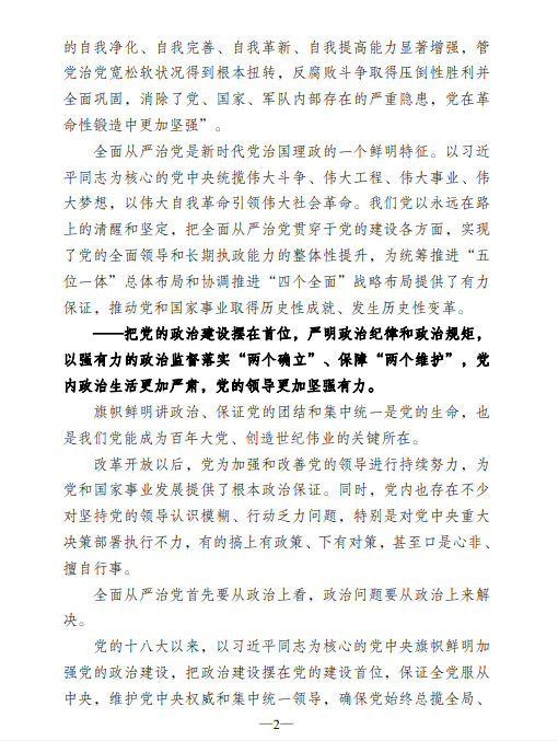 全面从严治党的政治引领和政治保障作用充分发挥