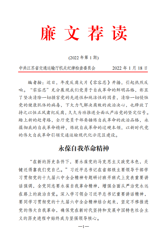 2022年廉文荐读第2期——持续加固中央八项规定堤坝 推动新时代作风建设高质量发展