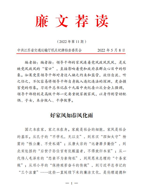 2022年廉文荐读第11期——好家风如春风化雨