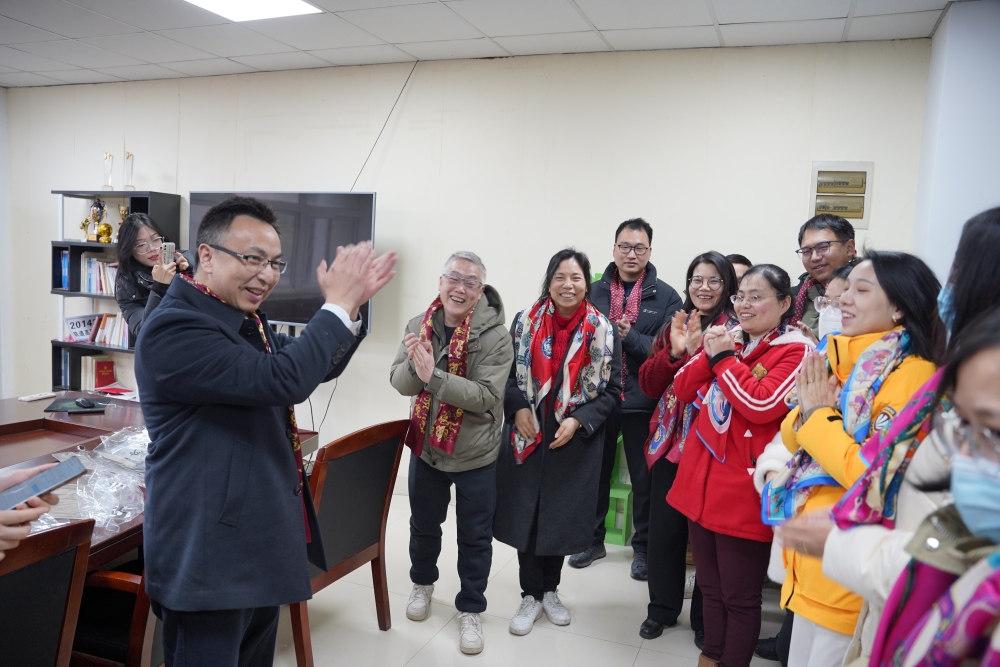 2月24日,在新学期开学之际,学校校长、党委书记李进,党委副书记、五级职员朱雨兰,副校长耿兴华、范次猛等一行来学院慰问,向全院节后返岗的教职工致以新春的祝福和新学期的问候,为教职工送上新年“小礼品”,为大家提士气、鼓干劲。