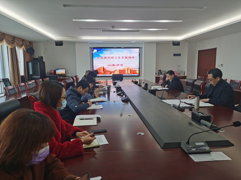 3月5日,校党委书记、校长李虎和副校长耿兴华等校领导到教务处、科技与合作处调研学校教科研工作,教务处、科技与合作处全体成员参加会议。