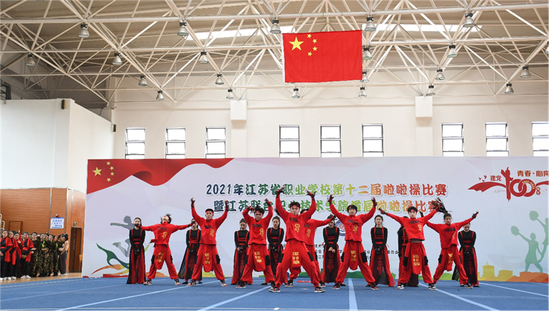 本届啦啦操比赛既展示了整齐划一的花球和街舞示范套路,更呈现了“青春心向党”创意编排,近900名运动员逐队展示、挥洒青春无畏、逐梦扬威的汗水。开幕式精彩纷呈、亮点频出,四支冠军队伍的运动员们再一次用青春洋溢的笑容、整齐划一的步伐、浑然一体的表演完美呈现了当代职业学校学生的风貌;近350名运动员代表同场跳动,用青春的力量献礼中国共产党筚路蓝缕、砥砺奋进的百年历程。两天的比赛,节凑紧凑,安排合理,井然有序,成绩喜人,赛场上的每一位运动员都积极拼搏,赛场边加油声此起彼伏。最终南京市玄武中等专业学校获得中职组团体总分第一名,运河高等师范学校(江苏联合职业技术学院运河高等师范学校办学点)获得高职组团体总分第一名。