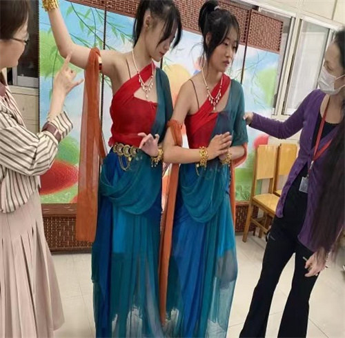 "敦者大也,煌者盛也;大而盛者谓之敦煌。大梦敦煌 盛世和光”汉服社和淑女堂的同学们在指导老师傅彩虹、王涛老师的带领下,认真排练舞蹈《一梦敦煌》。