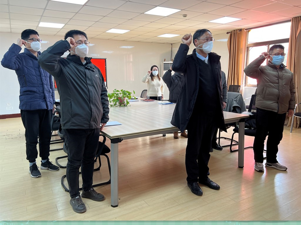 面对鲜红的党旗,郑院长作为领誓人,带领党员同志一起高举右手,再次庄严宣誓。“我志愿加入中国共产党……随时准备为党和人民牺牲一切,永不叛党。”铿锵有力的誓词,强烈震撼着在场的每一位党员,一字一句,神圣而豪迈,体现了党员同志们对中国共产党的无限忠诚。同志们表示,通过重温誓词来回顾我们入党时的庄严承诺,时刻提醒着自己所肩负的神圣使命和责任,不断强化对党的忠诚及对共产主义事业的不懈追求。作为新时代的共产党员,要牢记党员的责任感和使命感,在今后的工作中一定以昂扬的士气、进取的心态和创先争优的精神践行入党誓词,以踏实的工作态度和优秀的业绩为学院的发展建设做出自己应有的贡献。