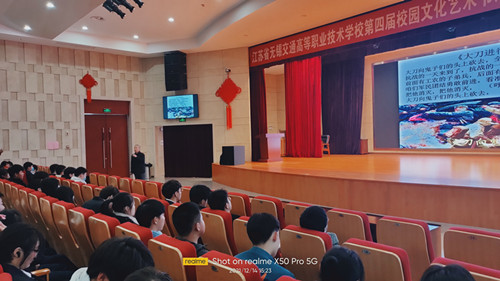 为教育引导团学干部铭记历史,振奋民族精神,加强青年学生的爱国主义教育,1214日下午,学校邀请了无锡市关工委报告团蒋川海老师,在学校礼堂面向团学干部开展了“铭记历史 开创未来”的主题讲座,全体在校班级班团干部、学生会干部和各社团负责人共200余人参加了此次活动。